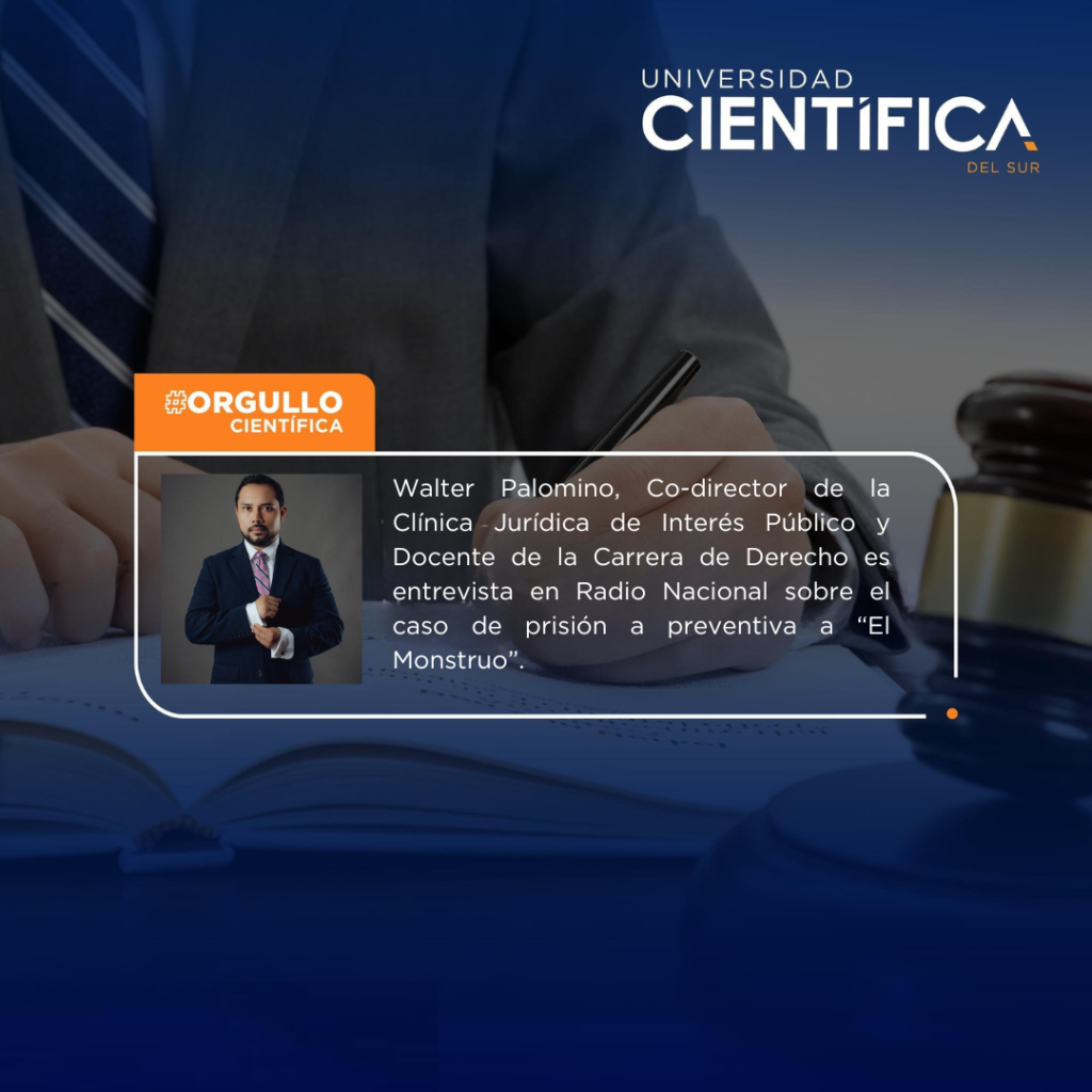El 10 de febrero de 2026, el Mag. Walter Joshua Palomino Ramírez, docente de la Carrera de Derecho de la Universidad Científica del Sur, Coordinador del Área Penal y Co coordinador de la Clínica Jurídica de Interés Público – Capítulo Penal, participó como invitado en el programa “El Informativo” de Radio Nacional del Perú, donde …